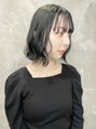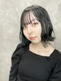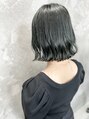 暗いブルーのダークトーンでオレンジ色を抑えて、前下がりでクールなボブです♪