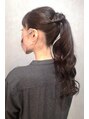 ポニーテールにみつあみmixのアレンジ。髪飾りも小ぶりの物で可愛く☆