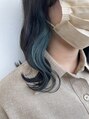 【気に入って頂いたスタイルはブックマークしてカウンセリング時にご提示ください】イヤリングカラーブルーグリーン♪さりげないインナーカラーで色を楽しみましょう!