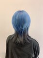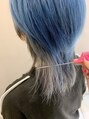 ウルフベース。ケアブリーチを2回してトップにブルー。インナーにグレー。ムラサキシャンプーでケアすれば、ホワイト系に色落ちしてくれます。(EARTH恵比寿)