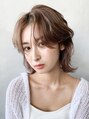 32mmのコテで全体を外ハネにし、顔周りをリバースで表面を軽くうちに巻いて、オイル仕上げ【気に入ったスタイルは「ブックマークする」ボタンを押して、ご来店時ご提示ください】グレーベージュ,ニュアンスカラー,ミルクティーピンク,ブルーグレージュ