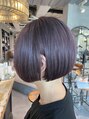 前下がりショートボブをケアブリーチを使い1ブリーチしてパープルアッシュをオン。色落ちも綺麗です。