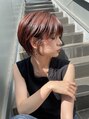 大人かわいい前下りショート、束感ショートはシースルーバング、シャープに切ったライン、襟足をしめてスッキリ見せたり、毛先の質感と、メリハリを効かせて絶妙なバランスに!カラーは赤みの強いダスティーピンクでつや感、束感をプラスして大人見えに!