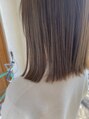 切りっぱなしの、ラインが可愛い♪トレンド感いっぱいの肩レングスのワンレンスタイルです☆スタイル自体は、重くならないように【インナーセニング】を入れて、見た目の重さはキープしつつ質感を軽くしてあります♪カラーはシアーベージュで透明感を☆