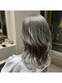 くびれヘアは全体と顔周りにしっかりレイヤーをいれてあげるとボリュームが出て、後ろに流れやすくなります!カラーはブリーチしてマットとグレージュを混ぜて赤みをなくして透明感抜群なオシャレ上級者に☆【adept北千住】