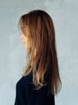 長めバングの大人っぽい女子らしさあるロングスタイルです!顔まわりは明るめにして、立体感と華やかさを出します。全体のカラーも、透明感のあるカラーで髪をやわらかく、ゆるく巻いた髪が、大人っぽさを演出しています!!