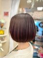 朝がらくちん♪コンパクトボブ艶出し程度のブローのみで簡単にまとまりますブラウンの中にほのかに感じるピンクが肌なじみをよくさせ血色感UPに!上品かつ可愛らしさがあるスタイルです