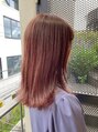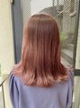 ゆるーい外ハネスタイルです☆耳かけしても可愛いですよ☆カラーはブリーチしてる毛にイルミナカラーのピンクベージュをいれてます☆ダメージをだしたくない人や透明感出したい人におすすめです☆