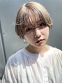 大人かわいい前下がりのマッシュショートはシャープに切ったライン、襟足をしめてスッキリ見せたりと、メリハリを効かせて絶妙なバランスに!カラーはブリーチ後ミルクティーアッシュで透明感、質感をプラスして大人見えに!ハイトーンカラー楽しみませんか?