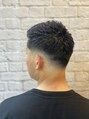 0ミリを入れない低めのフェードスタイル。シルエットの良さを重視して、360℃どこから見ても骨格がきれいに見えるようにカットしました。癖毛も活かしてボサつかないように収まりやすく梳いてあります!
