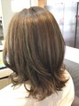 カットは外ハネもしやすいミディアムレイヤースタイルですスタイルに合わせてハイライトを入れてありますアウトラインにもしっかり入っているのて動きも出てアレンジも楽しくなるようにさせていただきました