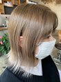 毛先だけブリーチしてグラデーションカラーに!!全体はブリーチなしで前回明るくしたベースを生かして、赤みを抑えたベージュ系のカラーに!!