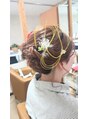 成人式の前撮りのお写真用に、サイドにキャスケードを作ることで華やかさを出しました!キャスケード部分には、今人気の水引きをアレンジ。反対側も水引きでアート感を出しています。