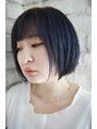 ブリーチハイトーンのヘアをブルーでトーンダウン。パツっとしたボブも顔まわりは軽くして動きを出すと今っぽいですね。
