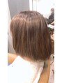 明るい10レベルのアッシュにローライト(5レベルのアッシュ)をプラス!髪に立体感やカラーが退色してきても明るくなりすぎず傷んで見えにくい効果のスタイルです。