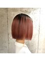 自毛を根本に残したブリーチカラー。ルーツのこしのブリーチはとても技術が必要になります。ご希望の方は是非ご指名下さい。カラーはピラミンゴピンクで淡めに。