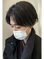 サイドとバックはツーブロック、すっきりさせた前髪短めのセンターパートスタイルです