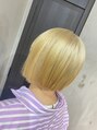 切りっぱなしボブスタイルに、ブリーチでほぼ抜きっぱなしのブロンズカラーです。ムラサキシャンプーを使うことで色持ちが継続されます。思い切ったハイトーンカラーにぜひ1度してみてはいかがでしょう☆