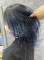 人気のグラデーションカラーシリーズ!毛先は暗めなネイビーブルー、根元から中間まではブラックをON!ブリーチ施術は1回。髪質によってブリーチの回数が異なりますのでご相談ください。