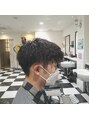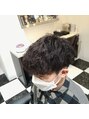 刈り上げツーブロックですっきりとさせ、トップはやや重めのにカットツイストスパイラルは細かく緩めにし程よい束感とウェーブに