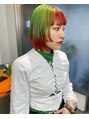 ネオングリーンとレッドのデザインボブ/ホットペッパービューティー