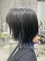 ミディアムのマッシュウルフベース。インナーにネイビーブルーのハイライトを入れてよりおしゃれを楽しんで!