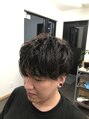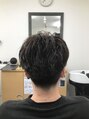 ツーブロックのピンパーマスタイルです。直毛で横に広がりやすい髪質のお客様です。自然な動きがだしたくウェーブはあまりだしたくないとのことでピンパーマで少しくせ毛風な雰囲気を作りました。