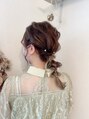 インナーカラーを計算した編みおろしスタイルふわふわの質感がドレスの甘さとマッチしています。