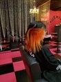 カットはウルフの毛先ととのえて量調節程度にとりました インナーもともとブリーチしてたのをリタッチブリーチしてからカラーバターで原色オレンジに