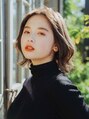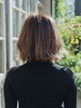 肩上のらいで切りっぱなしボブスタイルにカットして、表面に少しレイヤーを入れることで動きのあるボブスタイルになります。バングは透け感を出した甘すぎない抜け感のあるスタイルに。カラーはアッシュ系の赤みを抑えたブラウンに。