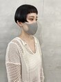 襟足を刈り上げたショートボブスタイル。前髪はオン眉でぱっつんにし、サイドはお顔に沿うようにカッコよくしました。、