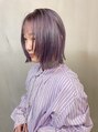 プツンとラインでcutし、顔まわりにレイヤーを入れています。ブリーチ数回してから、柔らかなlavender グレージュで染めました。