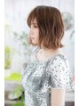 グラデーションカラーシースルーバングくせ毛風外ハネボブb1