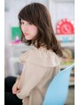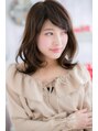 肩のラインでゆるやかなくびれカールがフェミニン。斜めバングと暗髪の重めスタイルの中に、エアリーなやわらかさをプラスして、絶妙な重軽MIXスタイルに格上げ!目元を印象つけて目力UP効果&顔周りの毛流れでフェイスラインをカモフラージュして美人顔に♪