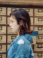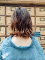 ミディアムレングスの巻きスタイルです。肩にちょうど着くくらいのレングスになっているので外ハネしやすく相性がいいです。このスタイルは癖毛風カールでラフな雰囲気に仕上げています。ストレートでタイトに仕上げても◎