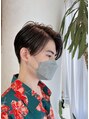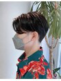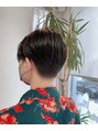 韓国風スタイルです。バックは高い位置まで刈り上げ、そこから前下がりシルエットに。前髪は7.3に分けてリバースに流しました。