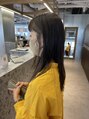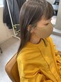 前髪とサイドにほんのりわかるダスティグリーンのフェイスフレイミングカラー。ブリーチでしっかり色を抜いて抜けても可愛いカラーに。スタイリングも作り込まなくても良いように、パッっと切りっぱなしに。