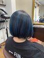 デザイン性抜群のブルーハイライトです☆コントラストハイライトのやり方で、ハイライトにブルー・ハイライト以外のベースは、ブルーグレージュを入れています☆