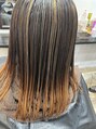グラデーションカラー★くっきりした線が出ないよう馴染ませてナチュラルにブリーチその後グレージュを全体にのせる。