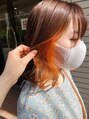 イヤリングカラーのオレンジになります。顔色がパッと明るくなりオススメなお色味です。ブリーチに抵抗があったりダメージを最小限に抑えたい方にオススメです。