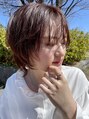 柔らかい動きで女性らしさを出しながら、お顔まわりをウルフ風にする事で今っぽさとこなれ感を出しました。軽さを出しながら、全体のまとまりも出しやすくカットしてあります。カラーはお肌をキレイに魅せるアプリコットオレンジです。