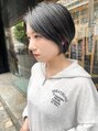 美シルエットな前髪なしショート、大人ショートボブはシャープに切ったライン、襟足をしめスッキリ見せたり毛先の質感、メリハリを効かせて絶妙なバランスに!ハイトーンをアッシュオリーブでトーンダウンし透け感をプラスしてヘルシースタイルに!