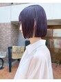 あごラインのぷつっとボブに青みのパープル。(ブリーチ2回)室内と屋外で見え方が変わります。パープルは色落ちも綺麗です。