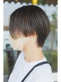 パツんとラインを残したハンサムショートです。さっぱりとした雰囲気で夏にピッタリ。少しモードな感じのおしゃれショートカラーはスプリングオリーブ系の明るめのアッシュで抜け感をハイライトをたっぷり入れてもGOOD