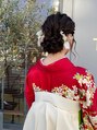 一番人気のヘアセットはこちら。ふんわり抜け感のある下めシニヨンスタイルです。飾りは持ち込みのドライフラワーやリボンを使って仕上げました。
