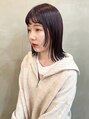 ぱつっとボブに顔周りを少し切り込んで、プチウルフに。耳掛けてタイトめにスタイリングするのもかわいいです!カラーはダークラベンダーで艶のあるカラーに。