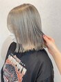 カットはぷつっとラインのミディアムスタイルで、ストレートアイロンで軽く外ハナにして、バームタイプのスタイリング剤でツヤ感を◎スタイリングするとよりぷつっと感が出て可愛いです◎カラーはホワイトシルバーカラーです!ブリーチ3回以上になります!