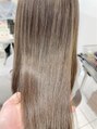 ハイトーンカラーのストレートロングスタイル。プレミアム縮毛矯正で負担を少なくしてくせを伸ばしています!カラーは赤味をおさえたオリーブ系ベージュに。明るめの髪色にするなら断然イルミナカラーがおすすめ!豊富なカラーバリエーションから選べます♪
