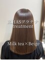 光に当たった時の透明感と色落ちも計算したミルクティーcolorにR.HAS髪質改善treatmentでより柔らかくしなやかな質感に導きます。#髪質改善#艶髪#ヒト幹細胞#個室#マンツーマン施術