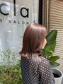 カット+イルミナカラーで透明感のあるカラーリングに。黄色みを抑えたパープルアッシュブラウン